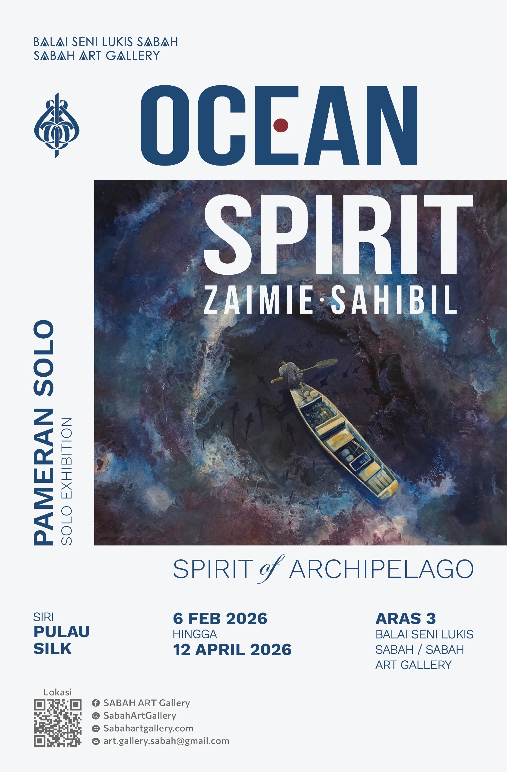Pameran Ocean Spirit: Spirit of Archipelago oleh Zaimie Sahibil meneroka jiwa kepulauan yang membentuk identiti, memori dan cara hidup komuniti pesisir. Berteraskan pengalaman peribadi beliau yang membesar di Pulau Silk, siri ini merakam hubungan antara manusia, laut dan budaya maritim.